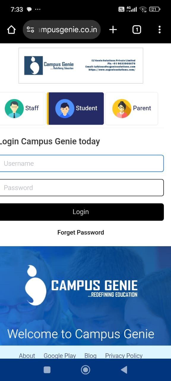 Chrome browser on your mobile and type your campus url (https://akvb.campusgenie.co.in) in the search bar