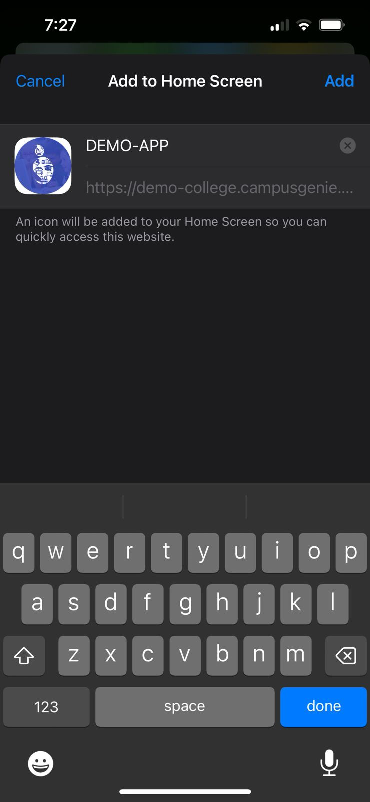 Click on the icon right side of search bar to install Campus Genie on your device